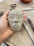 My second project in this class was a face; something loosely humanoid, though able to be mythical. I was fairly happy with the outcome- though, when fired and turned into bisque ware, it was obvious that I hadn't smoothed the piece enough before it was fired, and was very rough and textured. If I were to attempt it again, I would spend more time on smoothing the piece.